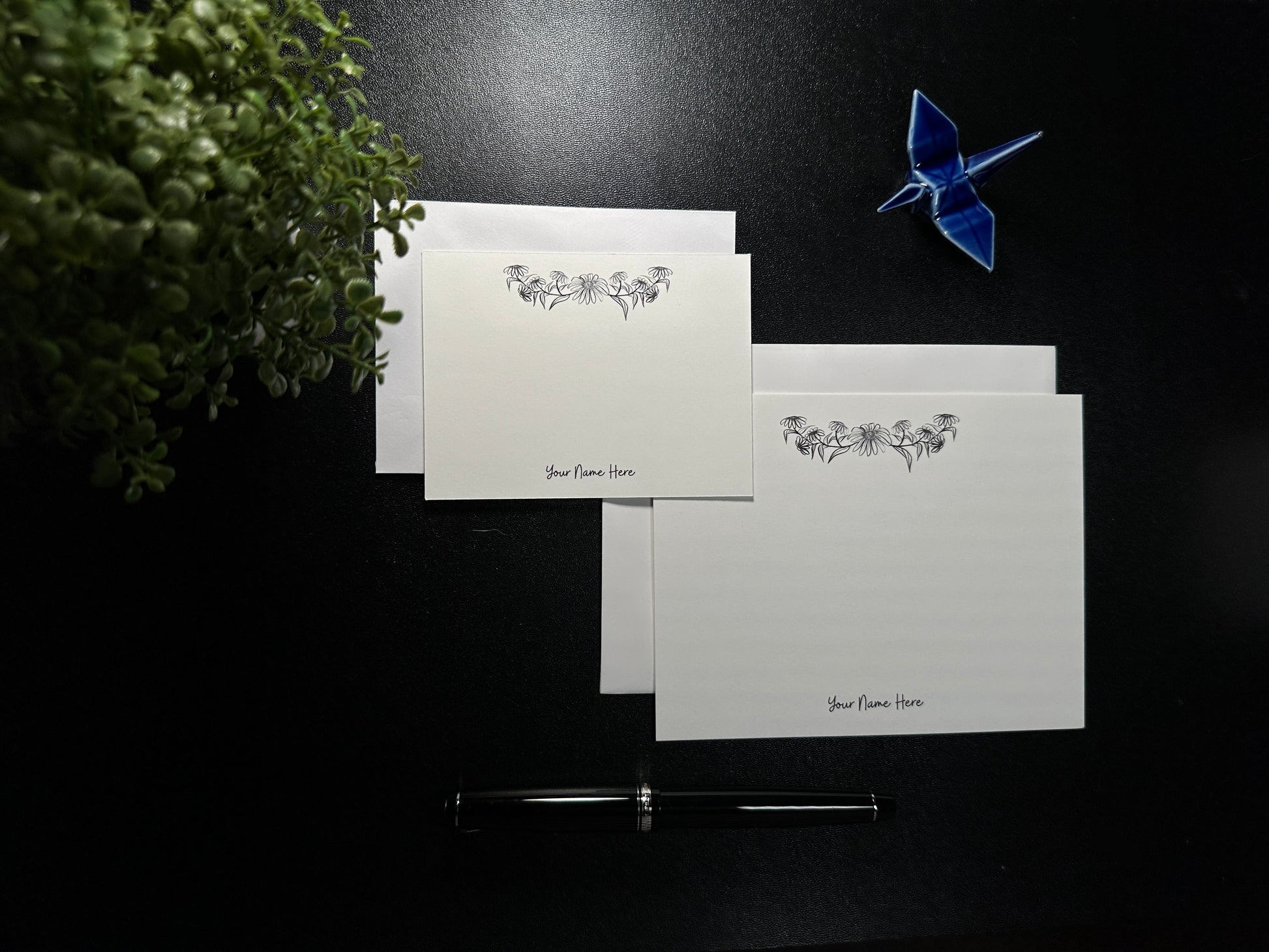 This set comes with your selected number of notecards with corresponding white envelopes and standard packaging.