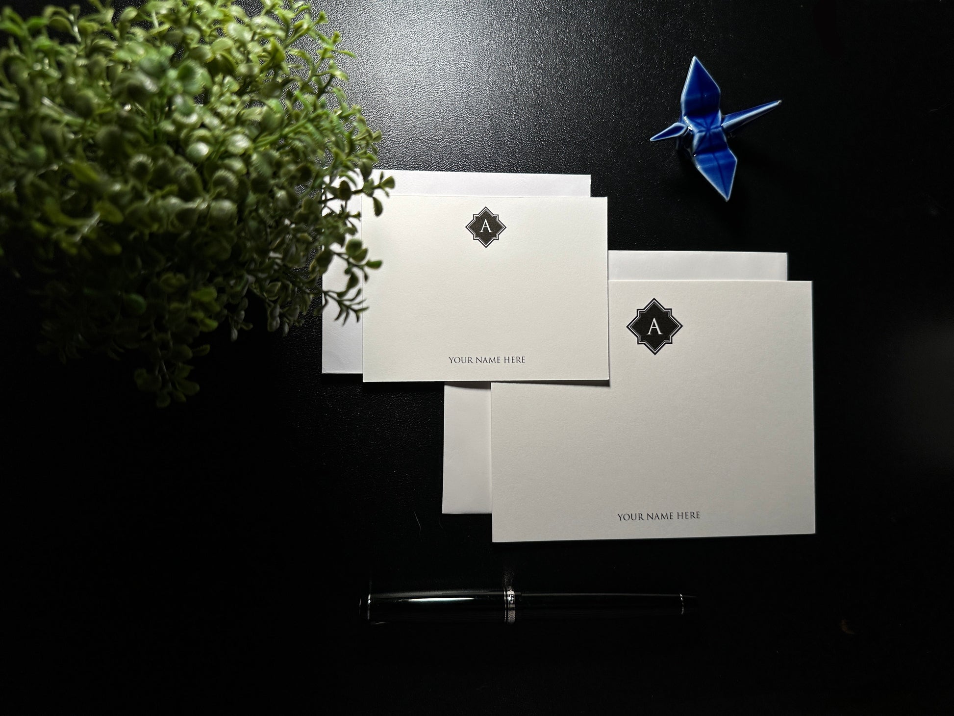 You may also personalize the notecards at no additional cost by choosing from our wide selection of fonts. By default, we use the same font for your monogram and name. You may also opt for different fonts for the monogram and your name. If so, pls. indicate your font choices including the initial and name you would like to be printed in the text box.