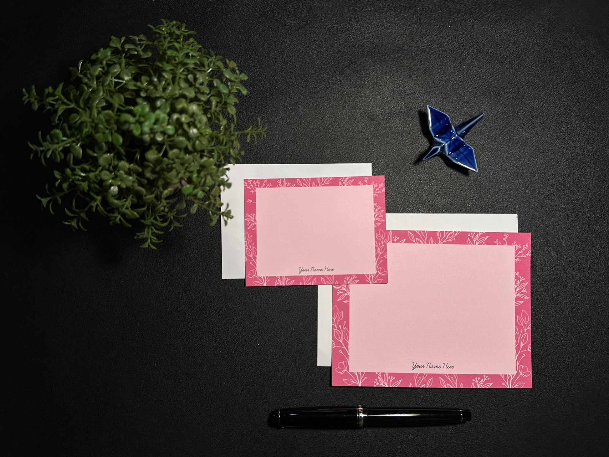 Flat Notecard Set - White Line Flora (Fuchsia & Teal)