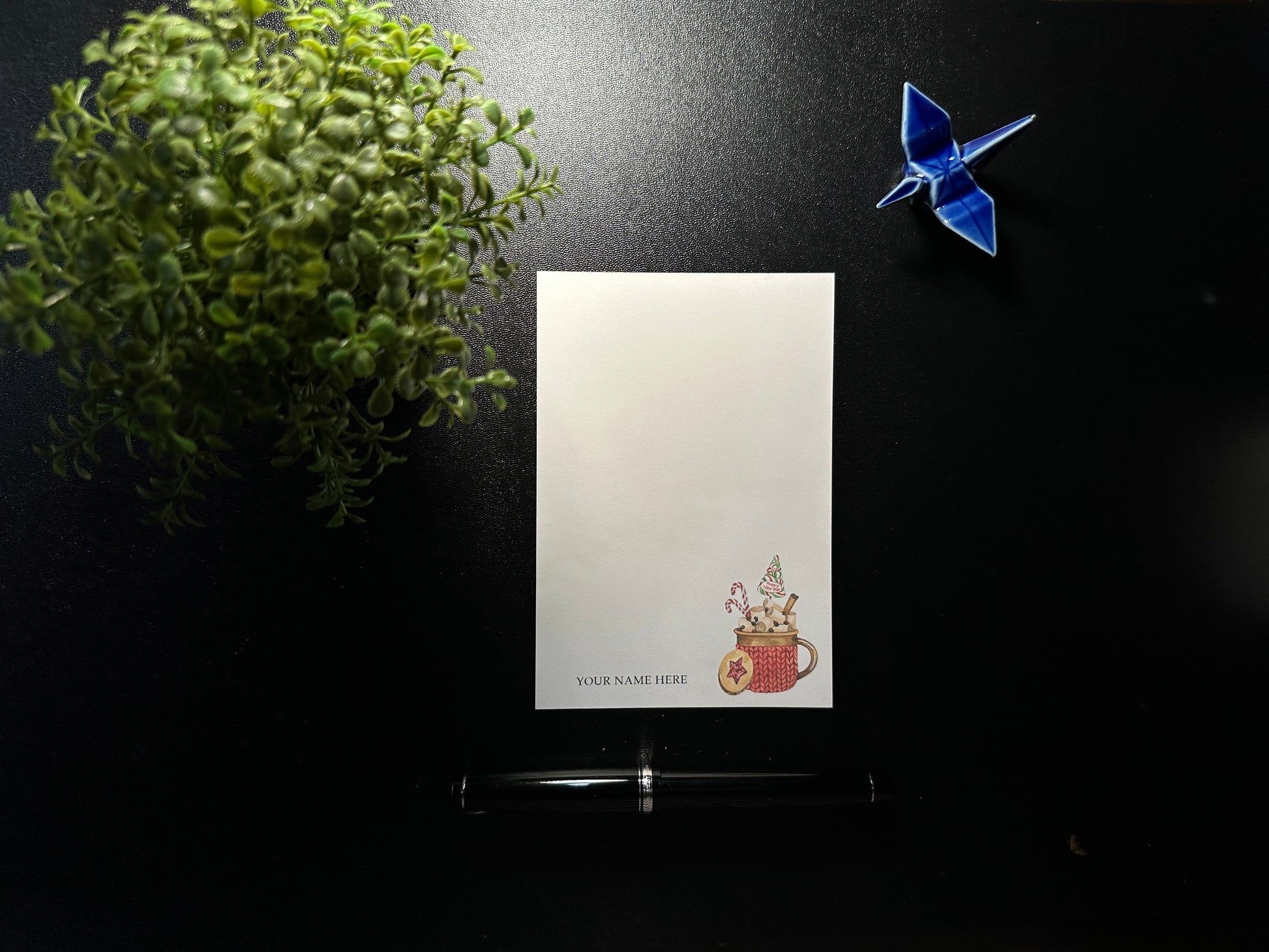This notepad comes padded in a set of 40 sheets. Product size is 3.75" x 5.5". You may also personalize the notepad at no additional cost by choosing from our wide selection of fonts.