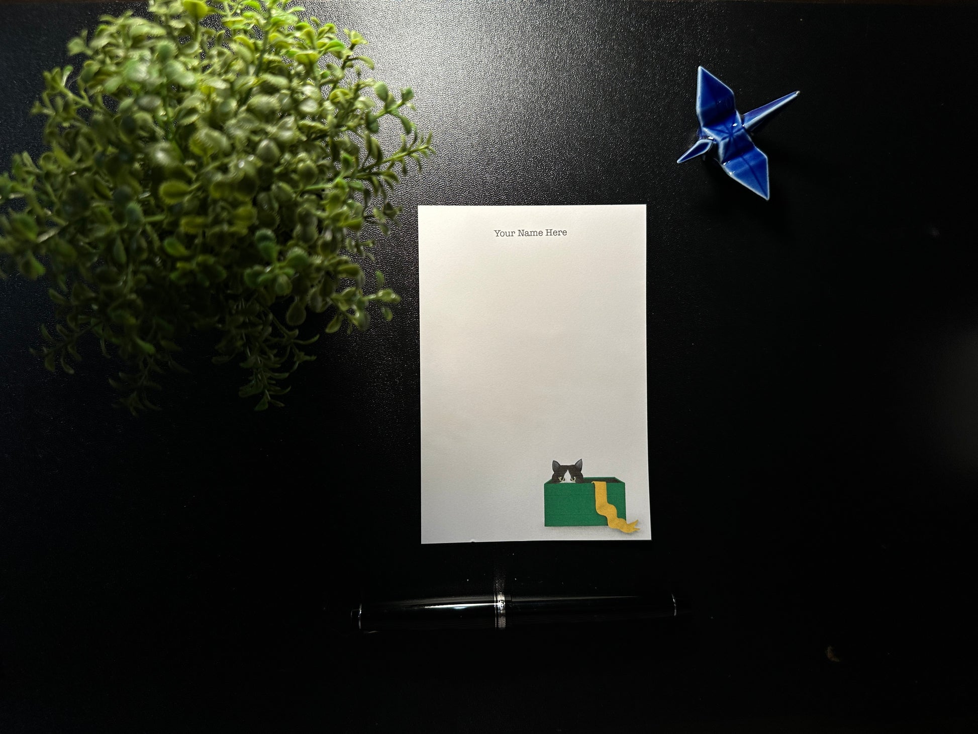 This notepad comes padded in a set of 40 sheets. Product size is 3.75" x 5.5". You may also personalize the notepad at no additional cost by choosing from our wide selection of fonts.